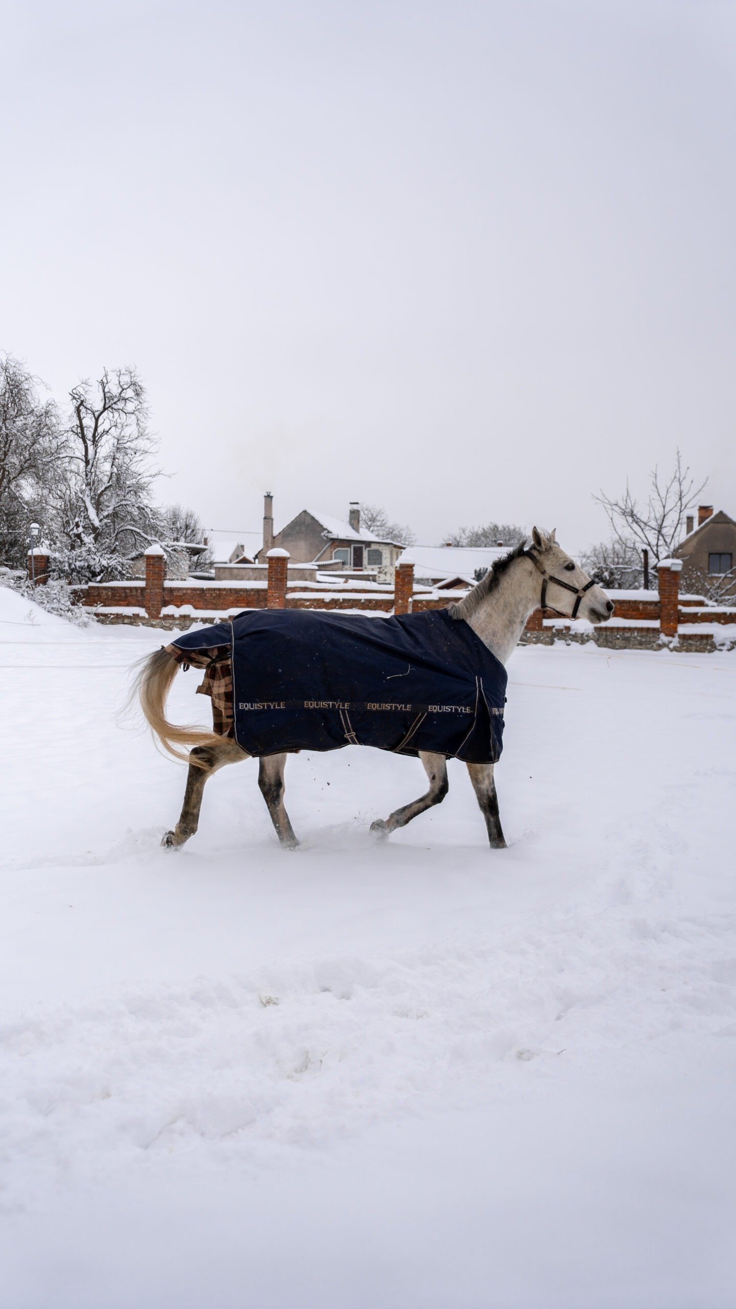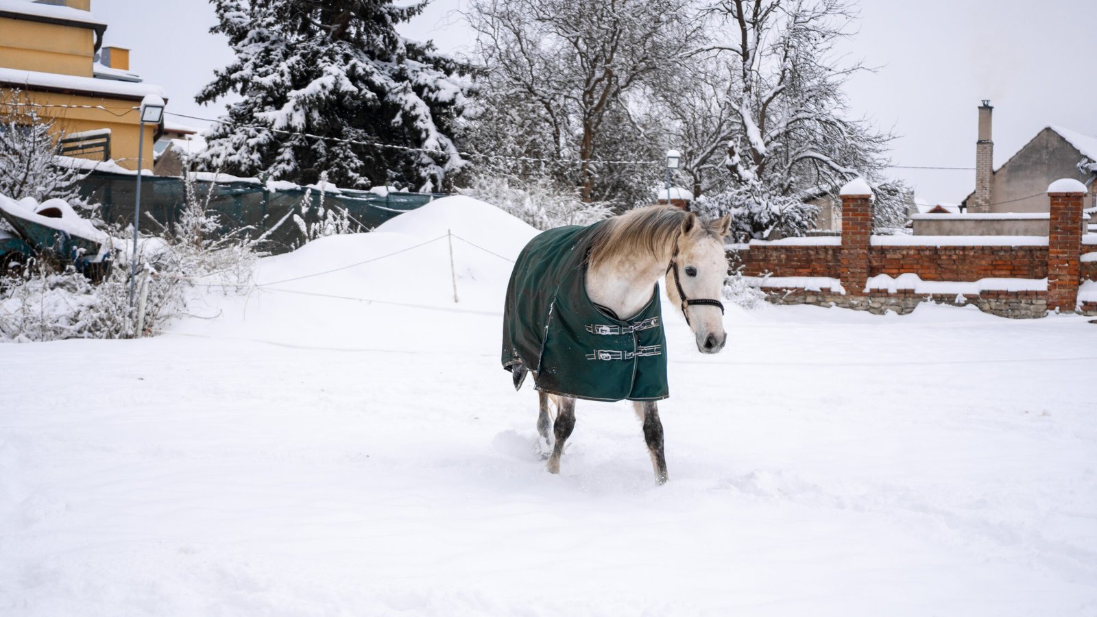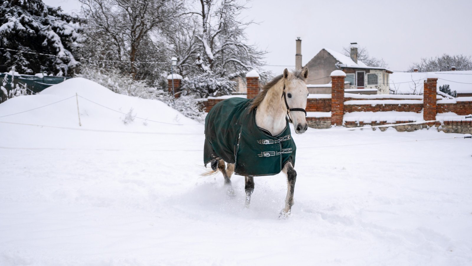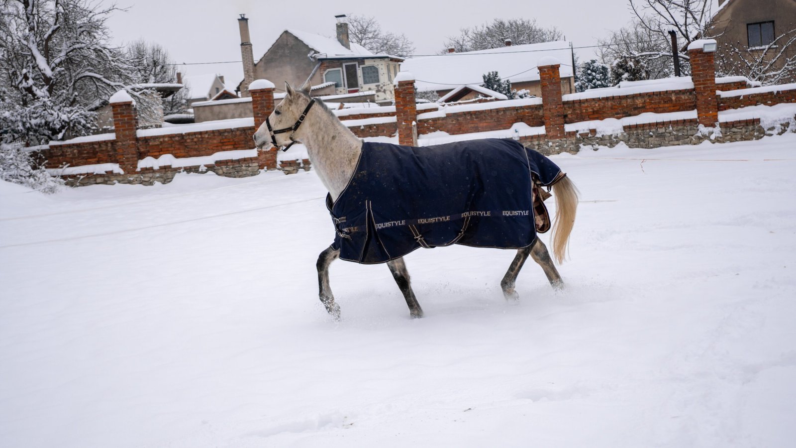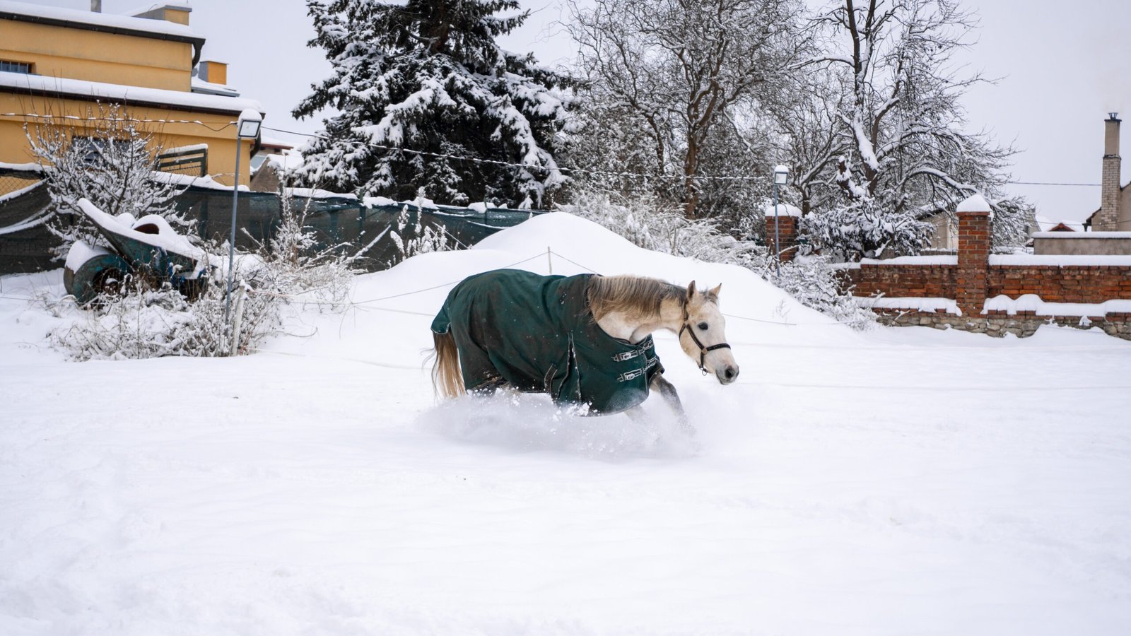 Zimní focení modelky ve společnosti koní