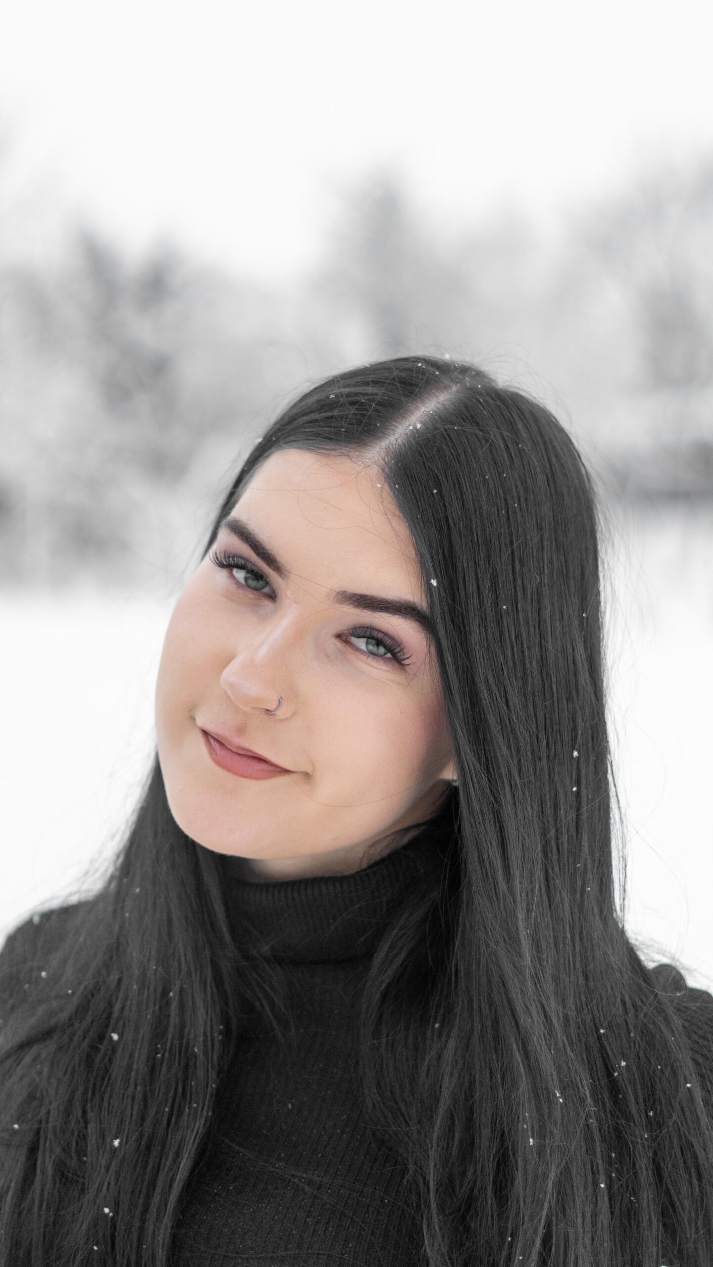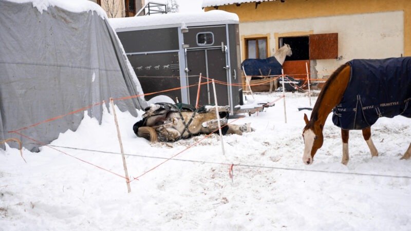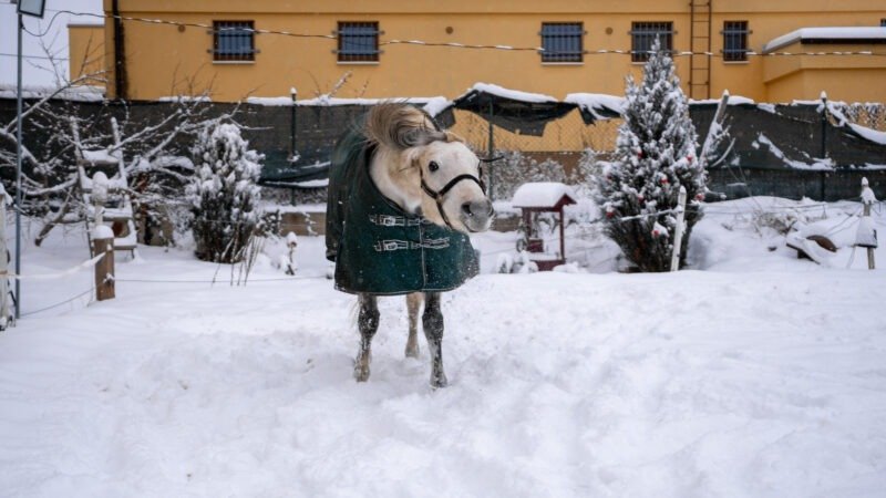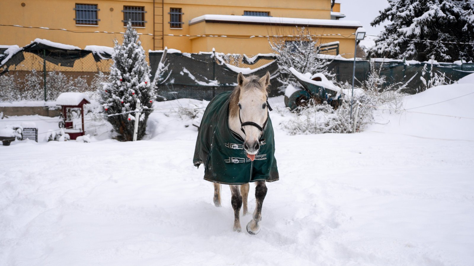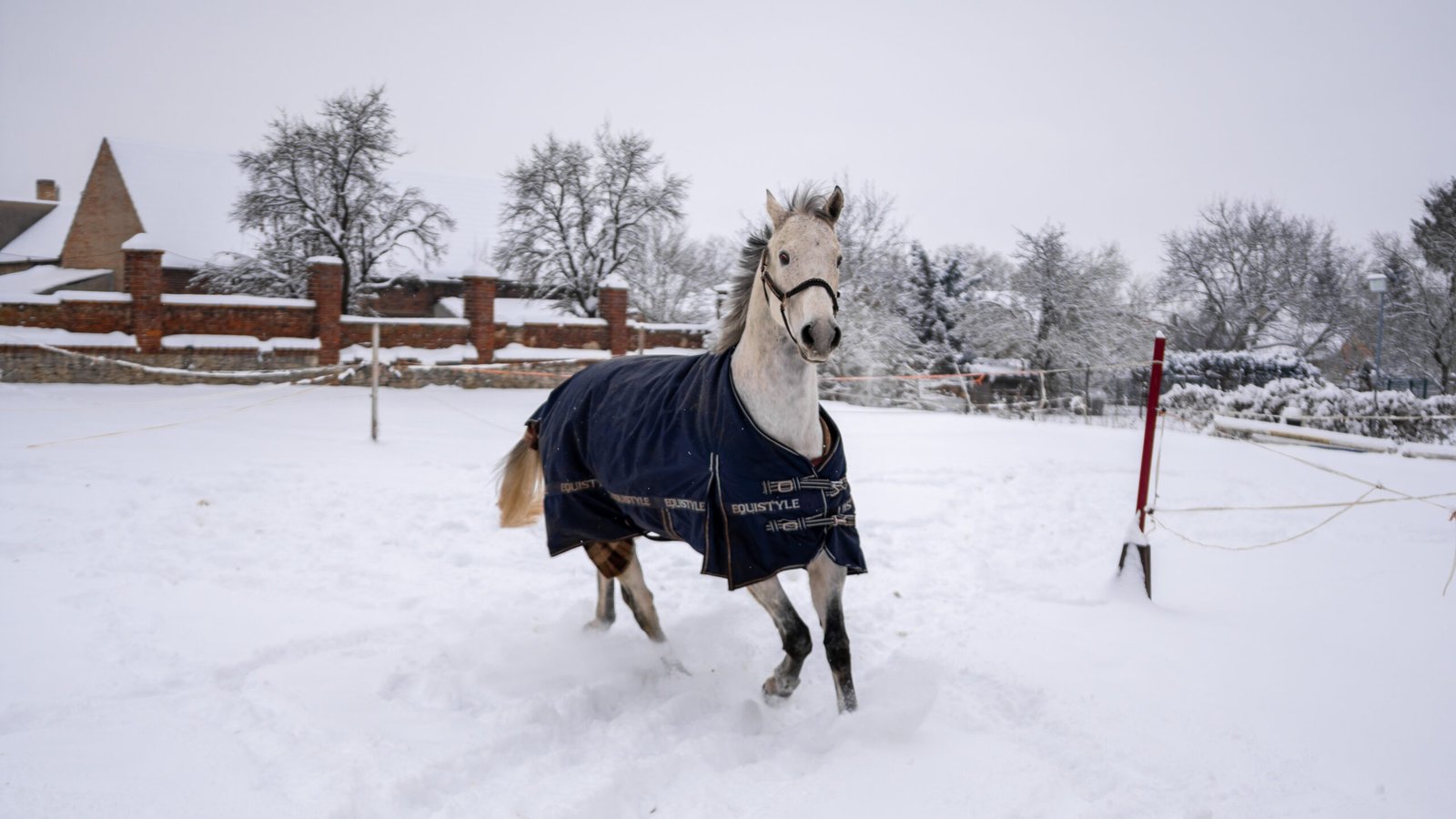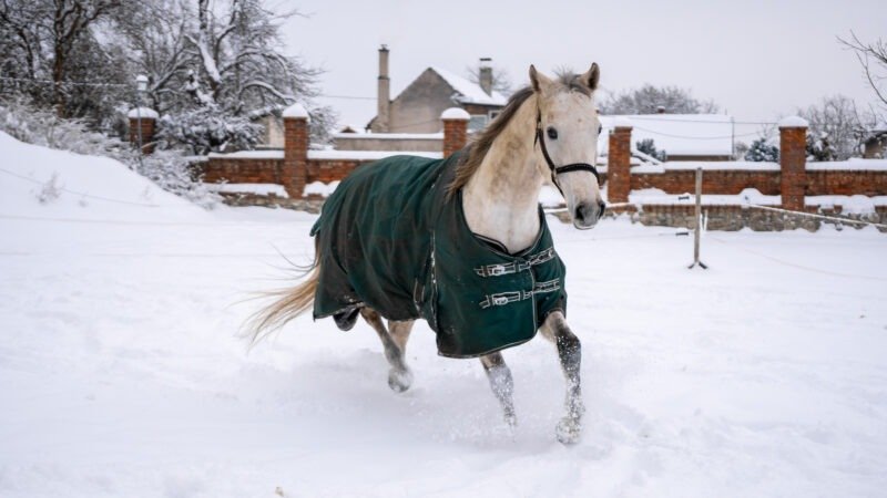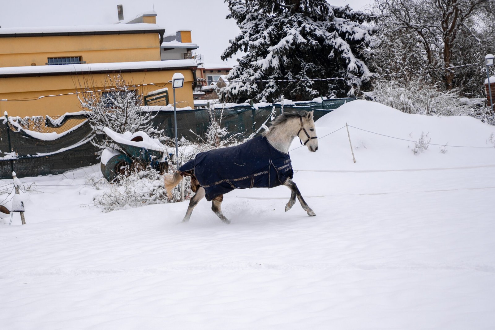 Zimní focení modelky ve společnosti koní